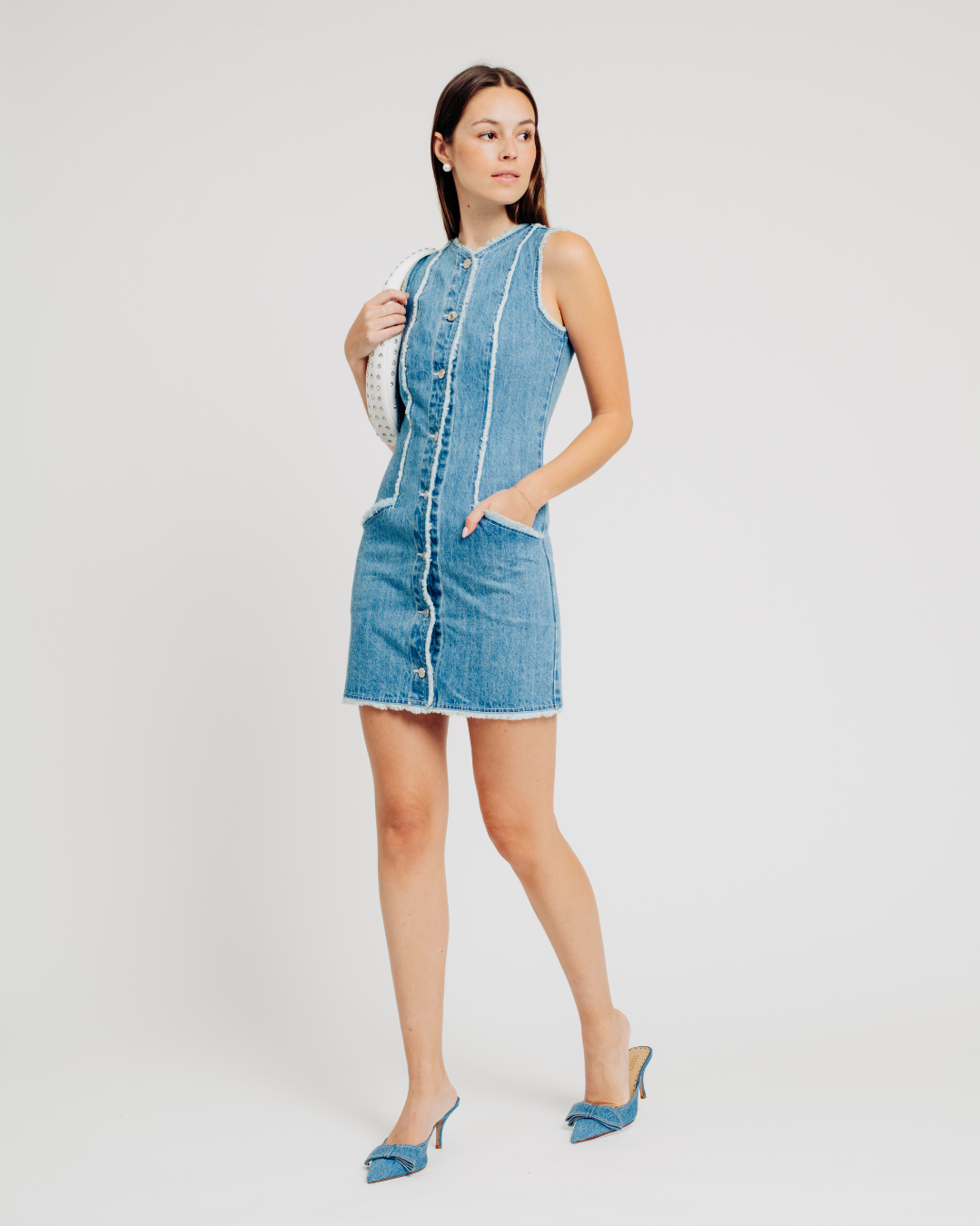 "The Erika Top is the most flattering denim piece I’ve ever owned. Cinched waist, structured shoulders, and so cool with the matching skirt. I get the ‘Where is that from?’ question nonstop."