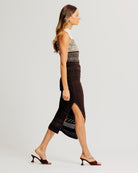 The Amber Dress from Torn by Ronny Kobo, a captivating summer essential that exudes sophistication and style. Crafted from luxurious knit fabric, this dress boasts exquisite detailing and a flattering silhouette that sets it apart. Whether you're enjoying a leisurely brunch or attending an outdoor soirée, the Amber Dress elevates your look with its refined elegance and timeless appeal. Perfect for warm-weather gatherings, it's the epitome of chic summer fashion. Enhance your summer wardrobe with the Amber Dress from Torn by Ronny Kobo.