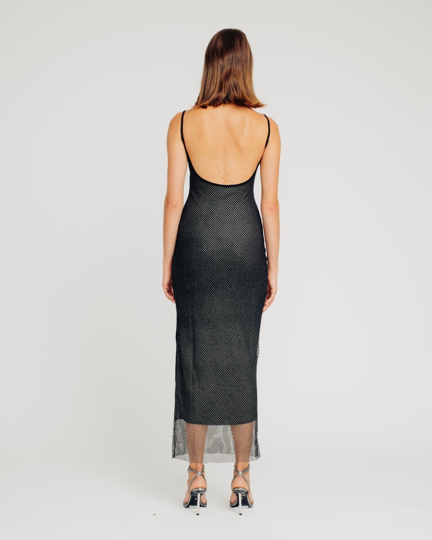 Embody elegance in the Luna Dress, a full-length design crafted from shimmering metallic mesh. The dress features a low, dramatic back neckline, balancing allure with sophistication. Fully lined in lightweight jersey for comfort, the Luna Dress offers a refined fit with a subtle stretch, making it an unforgettable choice for any evening look.