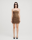 Turn heads with the TALIA DRESS, a strapless mini dress designed to balance sleek sophistication with everyday functionality. Featuring flattering princess darts at the front and back, this silhouette contours beautifully to your shape. The functional patch pockets with flaps at the front add a modern utility touch, while the invisible zipper at the center back ensures a seamless finish. Fully lined for comfort and confidence, this dress effortlessly transitions from daytime events to evening soirées.