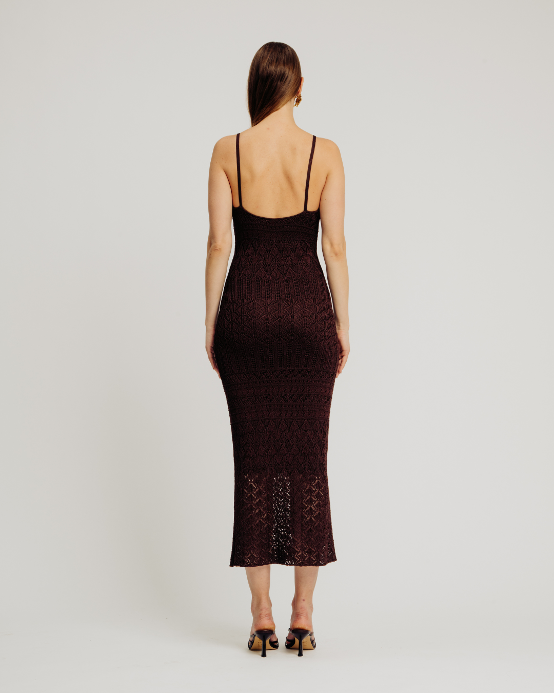The Vanessa Dress is a midi-length stunner is crafted with a fully fashioned pointelle stitch and plaited knit that sculpts and moves with you. A subtle shimmer catches the light, while delicate shoulder straps and full lining ensure a flawless fit.