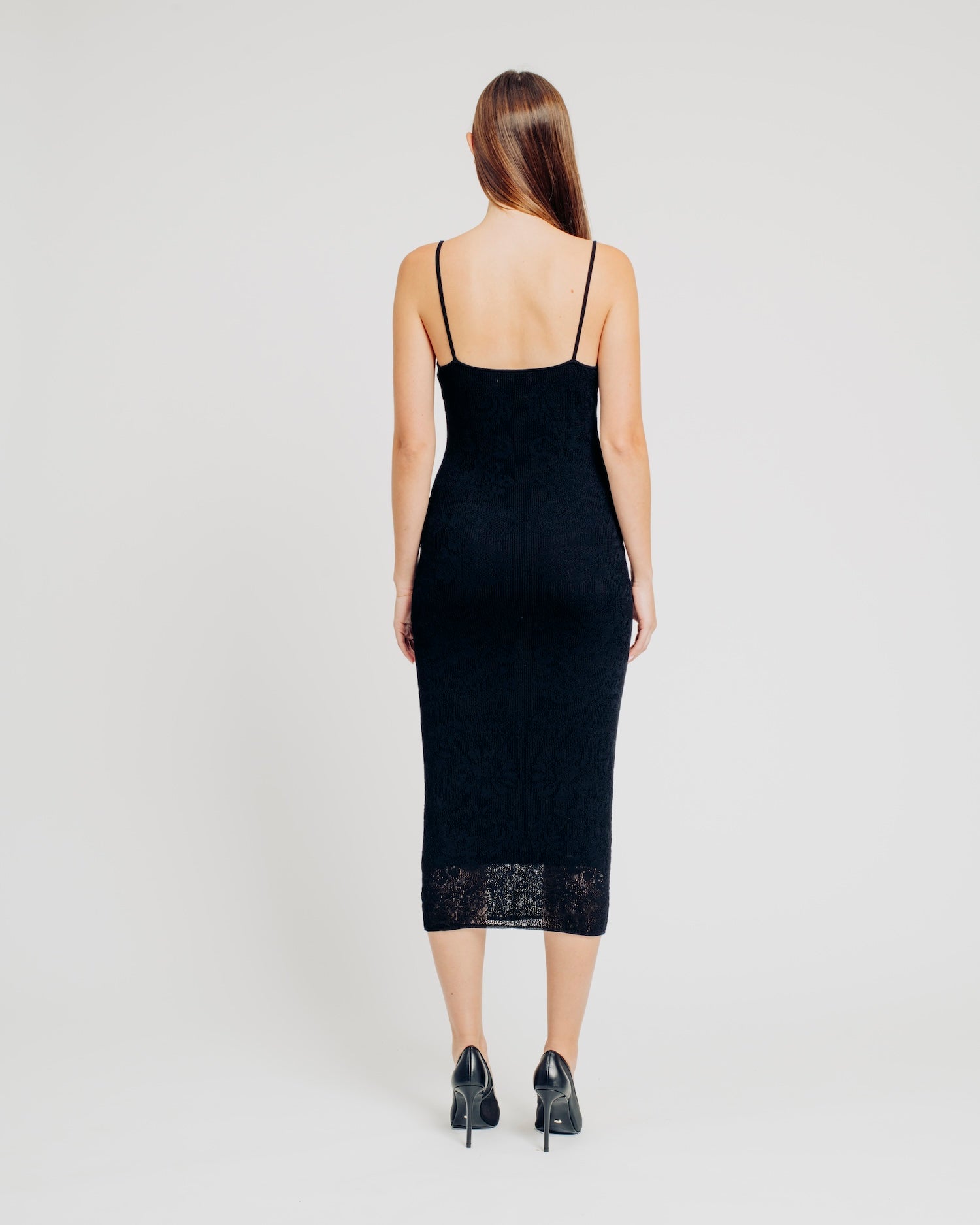 Elevate your style with the Delia Dress, a refined midi-length design crafted in delicate pointelle lace knit. Fully lined for comfort, this dress features a sheer V-shaped inset at the front neckline, adding a hint of allure to its classic silhouette. With its intricate lace detailing and timeless appeal, the Delia Dress is an elegant choice for any occasion that calls for sophistication.