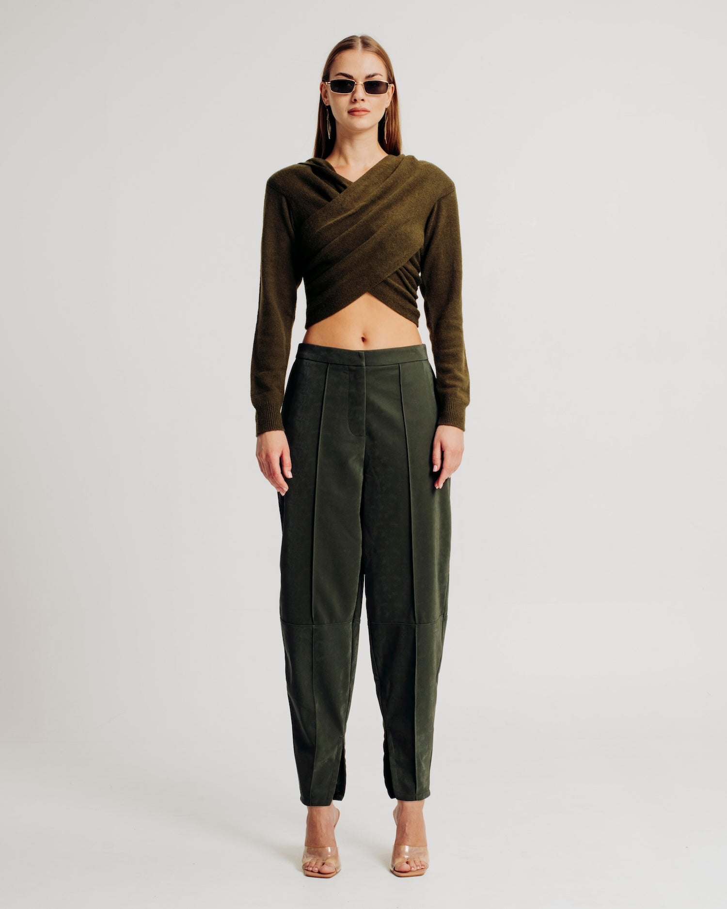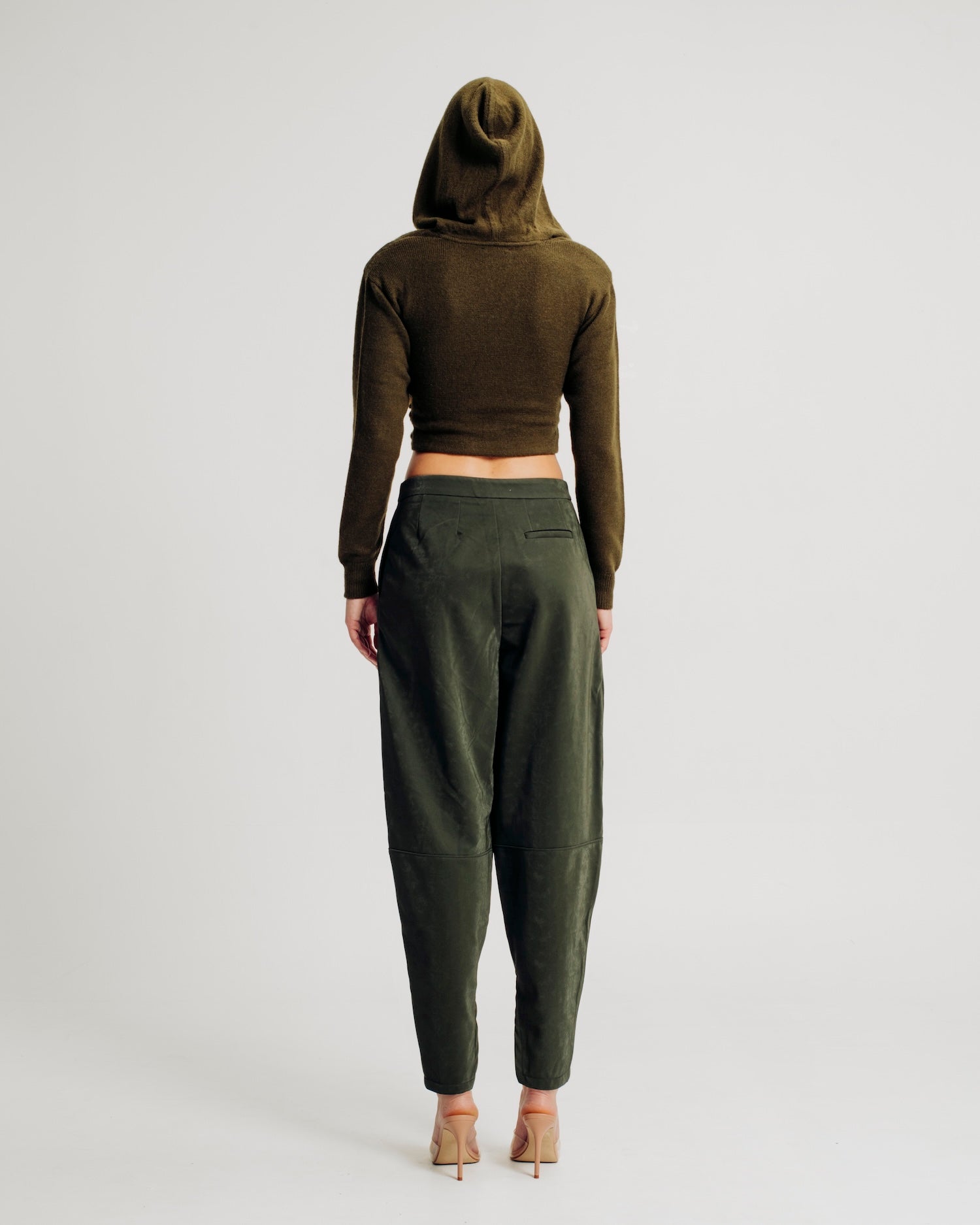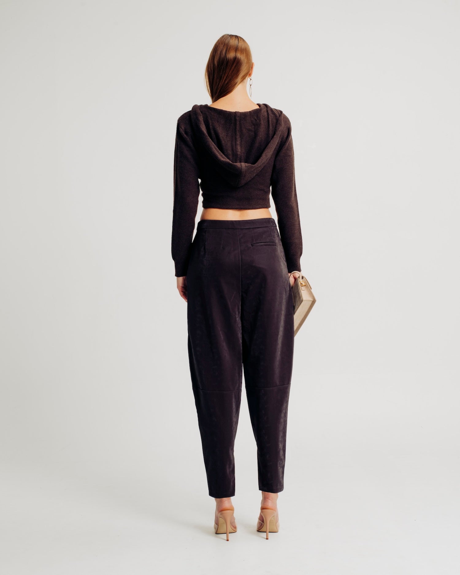 The Kimara top is a stylish and contemporary piece featuring a fully fashioned knit design. It boasts an oversized hood that adds a casual yet chic vibe. The front of the top showcases a ruched wrap detail, creating a flattering and unique silhouette. Additionally, the top is equipped with shoulder pads, giving it a structured and bold look. This combination of elements makes the Kimara top a versatile and statement-making addition to any wardrobe. Pair with the Kimara Pant for the full look.