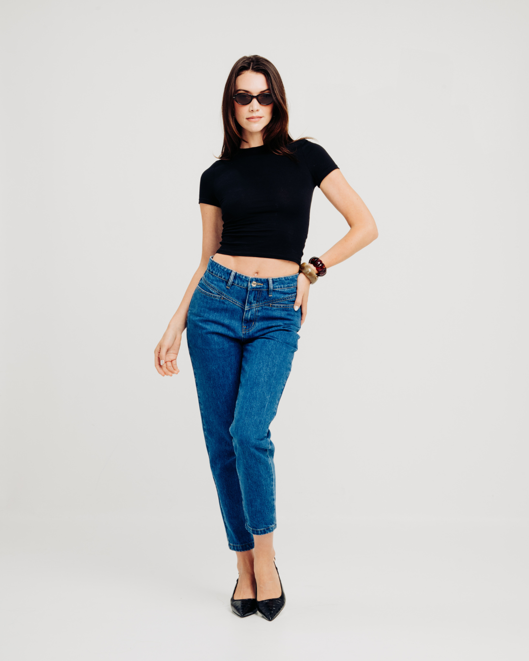 The Hazel Jeans deliver elevated everyday wear with thoughtful tailoring and detailing. These high-rise jeans offer figure-flattering coverage and a modern silhouette. The leg tapers gently and hits at the ankle length, creating a clean, contemporary shape. Polished hardware includes a metal shank button at the waistband and a fly front with metal zipper. Design touches such as front and back yokes provide structure, while the standout feature—in-seam front pockets with detailed seaming—offers sleek functionality. Classic back patch pockets complete the design. A double-layer self waistband ensures shape retention, while five sturdy belt loops make them ready to accessorize.