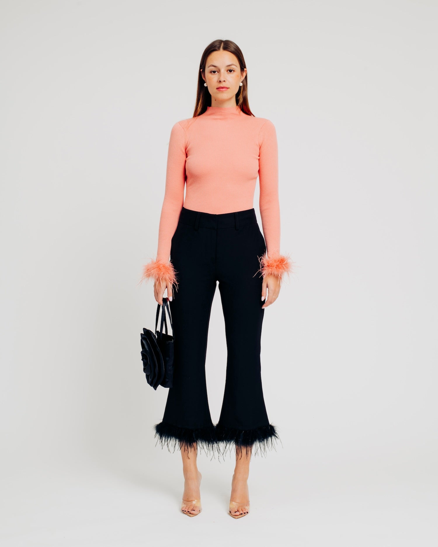 Journee Top, a seductively chic Feathered Sleeve creation that brings a touch of refined allure to your ensemble. This top is a celebration of dynamic style, where the feathered detailing along the sleeves elevates sophistication with a hint of understated sexiness. Perfect for those who seek a versatile blend of elegance and a subtly alluring charm, the Journee Top embodies the distinctive Torn by Ronny Kobo aesthetic.