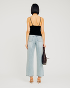 The Theia Camisole cut from jet-black fabric, balances bold structure with a fluid, body-skimming fit. The minimal design keeps it versatile. Whether layered under the Theia Top for a dynamic, statement look or styled solo for a daring, undone vibe, this camisole is one piece that makes everything else look better.