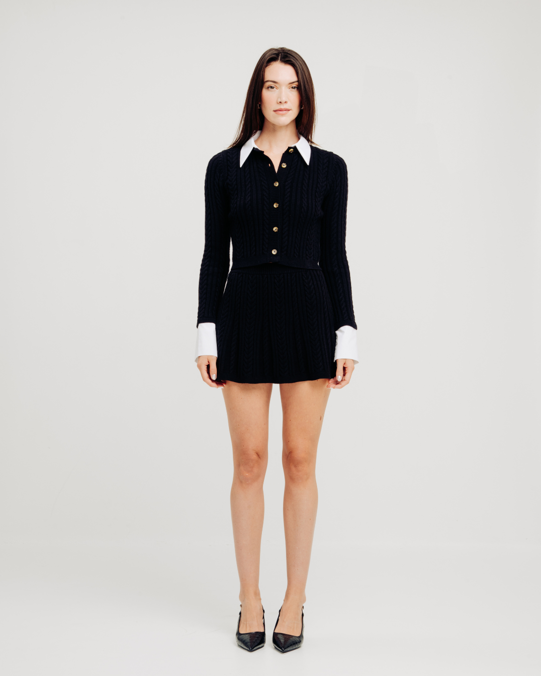 The Maeve Skirt offers a delicate balance of romantic texture and effortless shape. Knit in pointelle—a lightweight, airy fabric—this mini skirt brings subtle elegance to everyday wear. Its silhouette features a slight flare, adding graceful movement, while the elastic rib waistband provides comfort and shape retention.