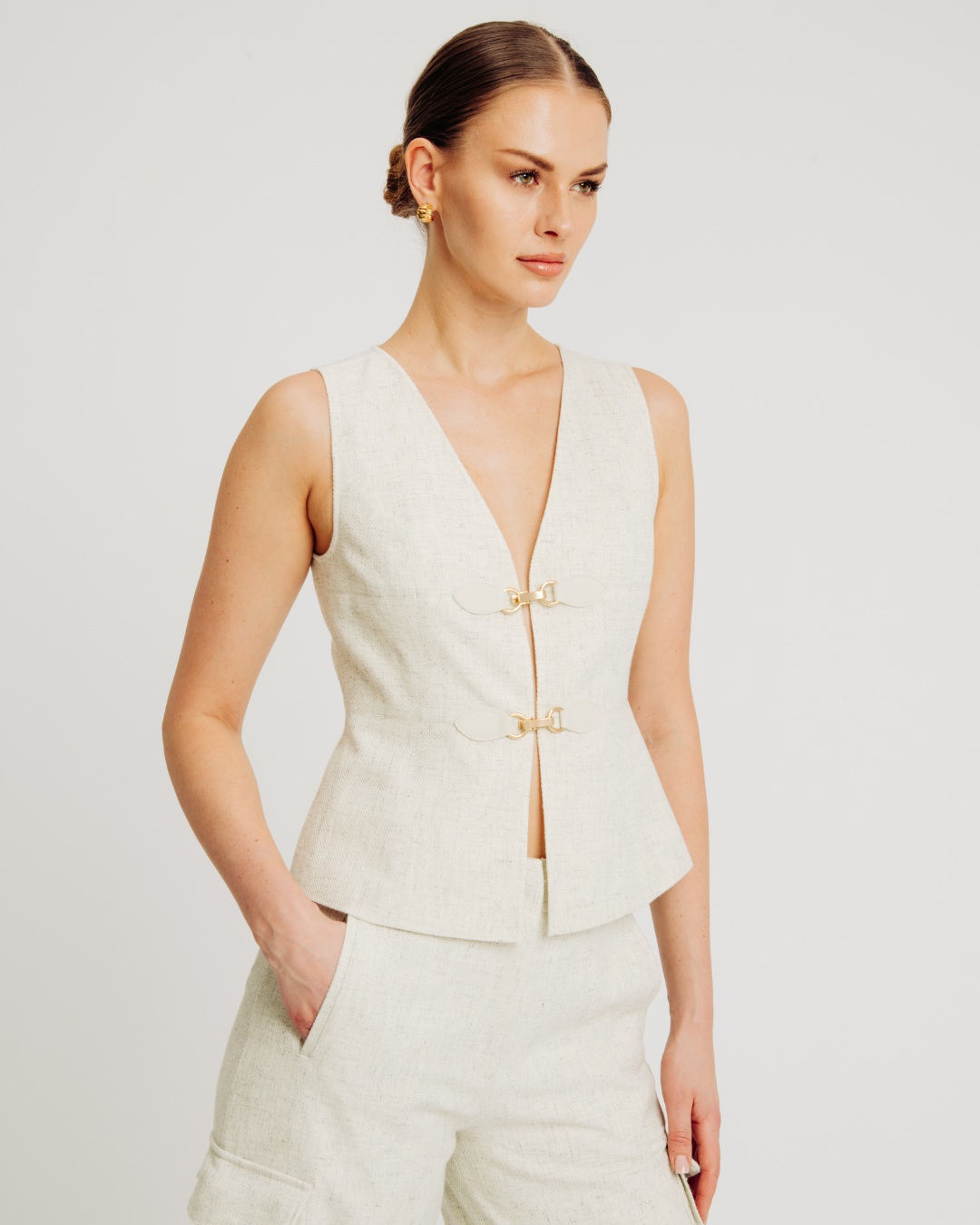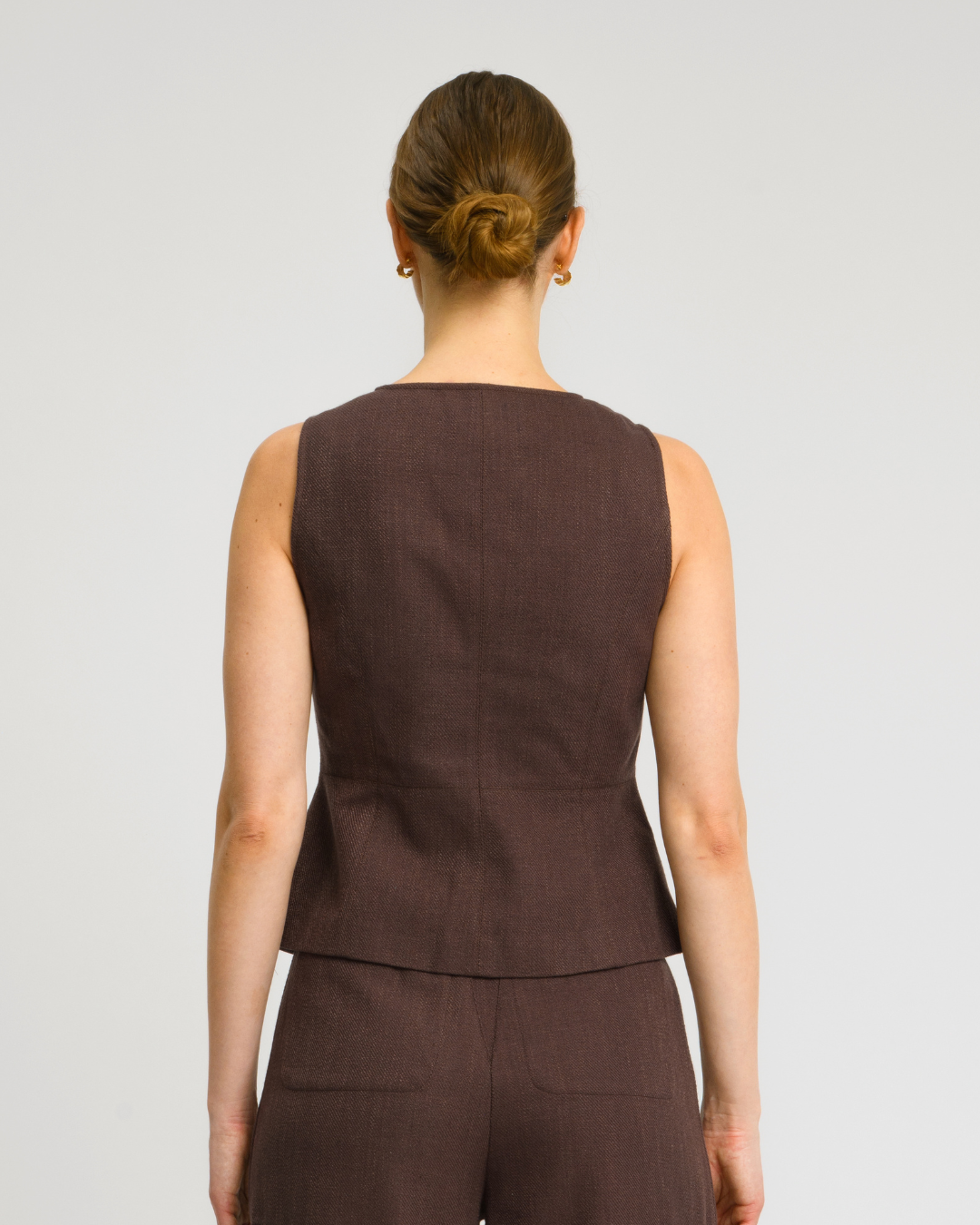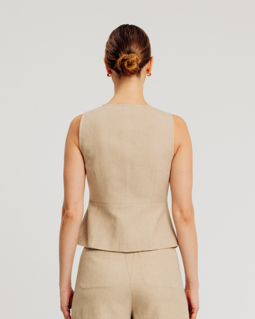 The Bernard Pant features a modern wide leg silhouette crafted from linen blend twill fabric for breathable comfort and structure. Designed with topstitching details, a front zip fly closure, tab detail at the waistband, and a center back gusset with horizontal belt loop for added functionality. Finished with back welt pockets, these trousers offer a polished yet relaxed look perfect for effortless everyday styling.