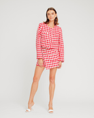 Coco Skort, a chic companion to its jacket counterpart with its Embellished Tweed design. This skort effortlessly captures the essence of glamour and individuality, featuring embellished details that add a touch of bold sophistication to the tweed texture. Perfect for those who embrace the fusion of modern edge and timeless elegance, the Coco Skort embodies the distinctive Torn by Ronny Kobo aesthetic. Elevate your wardrobe with this standout piece, where every thread tells a tale of confident style, making a statement that resonates with the unmistakable allure of Torn by Ronny Kobo.