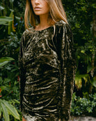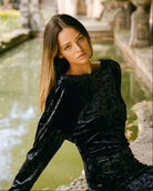 The Sasha dress is a timeless piece, featuring an eye-catching open back detail, tailored from luxurious crushed velvet. A perfect combination of softness, comfort, and style.