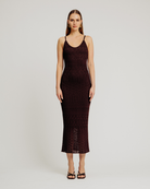 The Vanessa Dress is a midi-length stunner is crafted with a fully fashioned pointelle stitch and plaited knit that sculpts and moves with you. A subtle shimmer catches the light, while delicate shoulder straps and full lining ensure a flawless fit.